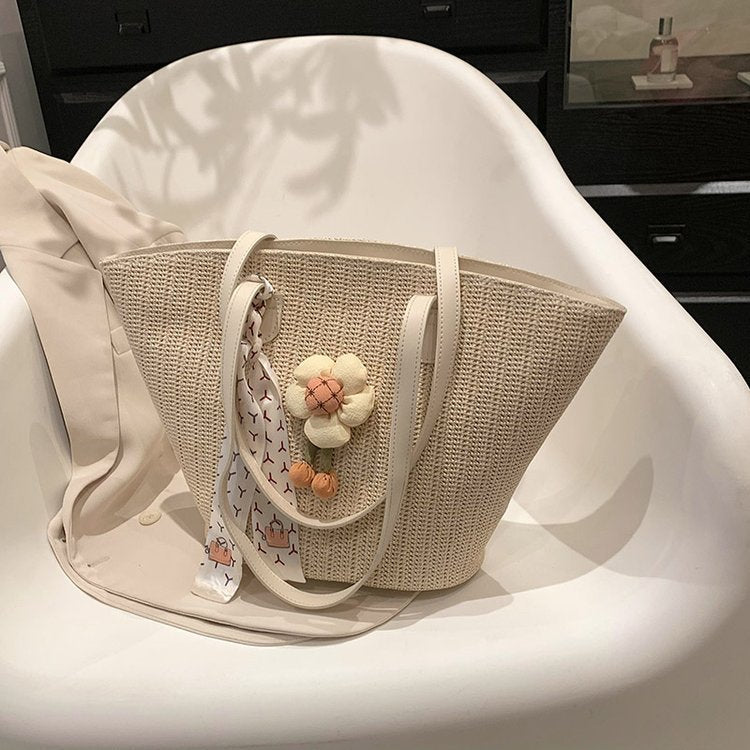 Mori Style Large Capacity Flower Decor Tot Bag