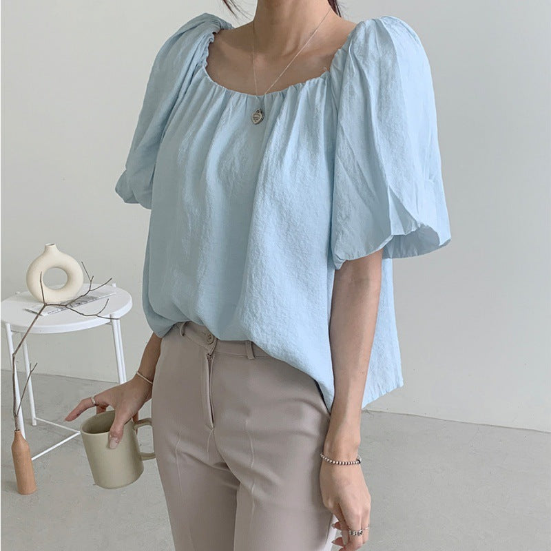 A universally flattering silhouette: This blouse features a relaxed, oversized fit with stunning puff sleeves, also known as "flight sleeves," that add a touch of drama and romance. The soft and flowy silhouette flatters most body types.